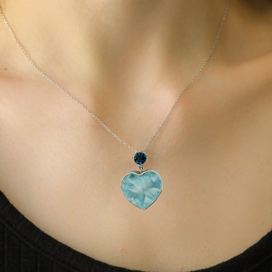 Heart Shaped Larimar Stone Pendant-London Topaz